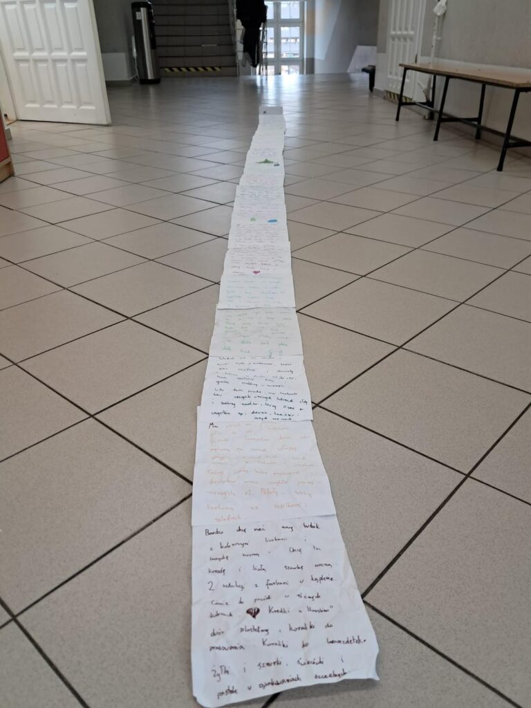 Grudniowe wyzwanie polegało na napisaniu listu z największą liczbą życzeń do Mikołaja, wykorzystując przy tym makulaturę. Każda część listu mogła być napisana na osobnej kartce, a następnie połączona w jedną całość. Podejmując się tego wyzwania, bezpośrednio wspieramy ekologię, ponieważ wymogiem konkursu jest wykorzystanie do listu zużytego już papieru.